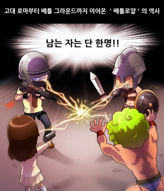 '¹èƲ·Î¾â' À帣 °ÔÀÓÀÎ '¹èƲ±×¶ó¿îµå' ¶ÇÇÑ ¿ÀÇ ¿ùµå·Î ±¸ÇöµÈ ¼¶¿¡¼ ÃÖ´ë 100¸íÀÇ À¯Àú°¡ ¹«±â, ¾àǰ µî ´Ù¾çÇÑ ¹°Ç°À» ȹµæÇϰí ÃÖÈÄÀÇ 1ÀÎÀÌ µÇ±â À§ÇÑ ÀüÅõ¸¦ ±×·Á³»°í ÀÖÀ¸¸ç ƯÁ¤ ½Ã°£ÀÌ Áö³ª¸é Á¦ÇÑ ±¸¿ªÀÌ ¹ß»ýÇÏ°í ±× ±¸¿ªÀÌ Á¡Á¡ Á¼¾ÆÁö¸é¼ ÀÚ±âÀåÀÌ ¹ß»ýÇØ ÀÚ±âÀå ¹Û¿¡ ÀÖ´Â À¯Àú´Â Áö¼ÓÀûÀ¸·Î ÇÇÇØ¸¦ ÀÔ¾î ÃÖÁ¾ÀûÀ¸·Î Á¼¾ÆÁø ±¸¿ª¿¡¼ À¯Àú°£ ÀÚ¿¬½º·´°Ô »çÅõ¸¦ ¹úÀ̵µ·Ï À¯µµÇÑ´Ù.