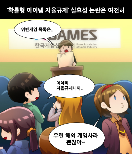 ÇÑ ¾÷°è °ü°èÀÚ´Â ¡°¡¯È®·üÇü ¾ÆÀÌÅÛ ÀÚÀ²±ÔÁ¦¡¯¸¦ ½ÃÇàÇÑ Áö ¾î´À Á¤µµ ±â°£ÀÌ Áö³µÀ½¿¡µµ ºÒ±¸Çϰí ÇØ¿Ü °ÔÀӻ縦 Áß½ÉÀ¸·Î ÁؼöÇÏÁö ¾Ê´Â »ç·Ê°¡ ¿©ÀüÈ÷ ¹ß°ßµÇ°í ÀÖ´Ù´Â Á¡Àº ¡®ÀÚÀ²±ÔÁ¦¡¯°¡ °¡Áø ½ÇÈ¿¼º¿¡ Àǹ®À» ǰ°Ô ÇÑ´Ù¡±¸ç ¡°ÇØ¿Ü¿Í ¸¶Âù°¡Áö·Î ¡®È®·üÇü ¾ÆÀÌÅÛ¡¯¿¡ ´ëÇÑ Á» ´õ ±¸Ã¼ÀûÀÌ°í °Á¦ÀûÀÎ ¹ý·ÉÀÌ ÇÊ¿äÇÏ´Ù´Â ¿ì·Á°¡ ³ô¾ÆÁö´Â °¡¿îµ¥ ¿ÃÇØ´Â ¡®ÀÚÀ²±ÔÁ¦¡¯°¡ ¾î¶² ¹æ½ÄÀ¸·Î °³Á¤µÉÁö °ü½ÉÀÌ ÁýÁߵǰí ÀÖ´Ù¡±°í ¸»Çß´Ù.