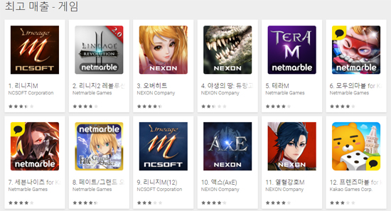 2¿ù 2ÀÏ ±¹³» ±¸±Û Ç÷¹ÀÌ ¸ÅÃâ ¼øÀ§´Â 1À§ºÎÅÍ 11À§±îÁö ÀüºÎ '3N'ÀÇ °ÔÀÓµé·Î ä¿öÁ³´Ù. ¸ÅÃâ 1À§ÀÎ ¿£¾¾ÀÇ '¸®´ÏÁöM'À» 2À§ ³Ý¸¶ºíÀÇ '¸®´ÏÁö2 ·¹º¼·ç¼Ç'ÀÌ Ãß°ÝÇϰí ÀÖ´Ù. À̾ ³Ø½¼ÀÇ '¿À¹öÈ÷Æ®'°¡ 3À§, '¾ß»ýÀÇ ¶¥: µà¶û°í'°¡ 4À§¸¦ ±â·ÏÇß°í, 5À§´Â ³Ý¸¶ºíÀÇ 'Å×¶óM'ÀÌ Â÷ÁöÇß´Ù. 6À§´Â 2013³â Ãâ½ÃµÈ ÀÌÈÄ ²ÙÁØÈ÷ ¸ÅÃâ »óÀ§±Ç¿¡ ¿À¸£°í ÀÖ´Â ³Ý¸¶ºíÀÇ '¸ðµÎÀÇ ¸¶ºí for kakao'°¡ ´Þ¼ºÇß°í, ³Ý¸¶ºíÀÇ '¼¼ºì³ªÀÌÃ÷ for kakao', 'ÆäÀÌÆ®/±×·£µå ¿À´õ', ¿£¾¾ÀÇ '¸®´ÏÁöM(12¼¼)', ³Ø½¼ÀÇ '¾×½º(AxE)', '¿­Ç÷°­È£M'ÀÌ ±× µÚ¸¦ µû¶ó°¡°í ÀÖ´Ù.