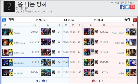 ¡ã '¿¡À̹Ö' ±èÇ϶÷ÀÌ ¹®Á¦ ¹ß¾ðÀ» ÇÒ ´ç½Ã °°ÀÌ °ÔÀÓÀ» Ç÷¹ÀÌÇÑ »ç¶÷ ¸í´Ü(Ãâó : LOL °ø½Ä ȨÆäÀÌÁö)
