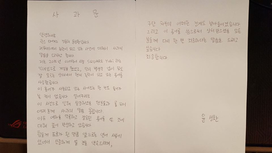 ¡ã '¼ºÈ¯' À±¼ºÈ¯ÀÇ ÀÚÇÊ »ç°ú¹®(Ãâó : ROX ŸÀ̰ÅÁî °ø½Ä SNS)