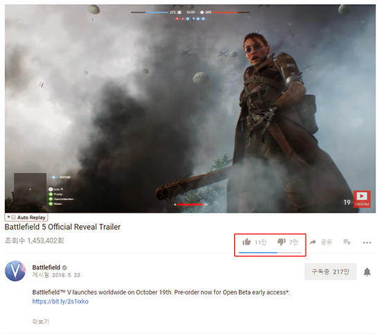 ÀÌ¿¡ µû¶ó À¯ÀúµéÀº °ø°³µÈ ¿µ»ó¿¡¼­ ¡®#notmybattlefield(³»°¡ ¾Ë´ø ¹èƲÇʵ尡 ¾Æ´Ï´Ù)¡¯¶ó´Â ÅÂ±×¿Í ÇÔ²² À̹ø ÀÛǰ¿¡ ´ëÇÑ ºÒ¸¸À» Ç¥ÃâÇϰí Àִµ¥, ¡®ÁÁ¾Æ¿ä¡¯°¡ 11¸¸ÀÎ µ¥ ºñÇØ ¡®½È¾î¿ä¡¯°¡ 7¸¸¿¡ ´ÞÇÏ´Â ¼öÁØÀ¸·Î ºÒ¸¸ÀÌ »ó´çÇÔÀ» È®ÀÎÇÒ ¼ö ÀÖ´Ù.
