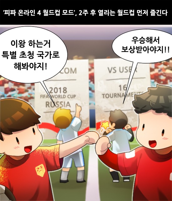 ÀÌÈÄ ³Ø½¼Àº 6¿ù 14ÀϺÎÅÍ 7¿ù 15ÀϱîÁö ·¯½Ã¾Æ¿¡¼­ °³ÃֵǴ ¡®2018 ÇÇÆÄ ¿ùµåÄÅ¡¯À» ¡®ÇÇÆÄ ¿Â¶óÀÎ 4¡¯¿¡¼­ Áñ±æ ¼ö ÀÖ´Â ¡®ÇÇÆÄ ¿ùµåÄÅ ¸ðµå¡¯¸¦ °ø°³Çß´Ù. °ø°³µÈ ¸ðµå´Â ´ëÇѹα¹ ±¹°¡´ëÇ¥ÆÀ°ú º»¼± ÁøÃâ 32°³ ±¹°¡´ëÇ¥ÆÀÀº ¹°·Ð, º»¼±¿¡ ÁøÃâÇÏÁö ¸øÇÑ Æ¯º° ÃÊû ±¹°¡ 6°³±¹(Áß±¹, Ä¥·¹, ¹Ì±¹, ³×´ú¶õµå, ÀÌÅ»¸®¾Æ, üÄÚ)µµ ¼±ÅÃÇÒ ¼ö ÀÖ¾î À¯Àú°¡ ¿øÇÏ´Â ¿ùµåÄÅÀ» Áñ±æ ¼ö ÀÖ´Â ¸ðµå´Ù.