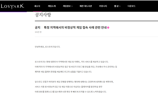 ÀÌ¿Í °ü·ÃÇØ ½º¸¶ÀϰÔÀÌÆ®´Â °øÁö»çÇ× ¡®Æ¯Á¤ Áö¿ª¿¡¼­ÀÇ ºñÁ¤»óÀû °ÔÀÓ Á¢¼Ó »ç·Ê °ü·Ã ¾È³»¡¯¸¦ ÅëÇØ °­°æÇÏ°Ô ´ëóÇÒ ¶æÀ» ¹àÇû´Ù. °øÁö¿¡¼­ ½º¸¶ÀϰÔÀÌÆ®´Â ¡°¡¯·Î½ºÆ®¾ÆÅ©¡¯´Â ÇöÀç ´ëÇѹα¹ Áö¿ª¿¡¼­¸¸ °ÔÀÓ ¹× À̺¥Æ®, ±âŸ ¼­ºñ½º¸¦ Á¦°øÇϰí ÀÖ´Ù¡±¸ç ¡°Å¸ Áö¿ª¿¡¼­ÀÇ ºñÁ¤»óÀûÀÎ Á¢±Ù ¹× ºñÀΰ¡ ÇÁ·Î±×·¥ À¯ÀÔÀ» Â÷´Ü, Áö¼ÓÇØ¼­ Áֽà °ü¸®ÇÏ´Â µî ÄèÀûÇÑ °ÔÀÓ Ç÷¹ÀÌ È¯°æÀ» Á¦°øÇص帮°íÀÚ ½ÉÇ÷À» ±â¿ïÀ̰í ÀÖ´Ù¡±°í ¼³¸íÇß´Ù.