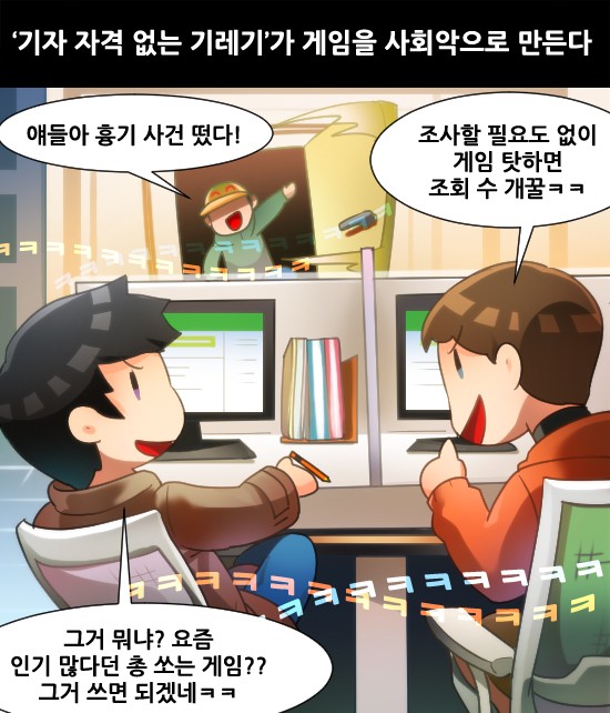 ÇÑ ¾÷°è °ü°èÀÚ´Â ¡°2017³â ±¹³» ÄÜÅÙÃ÷ »ê¾÷ ¸ÅÃâ¾×Àº ¾à 11Á¶5,341¾ï ¿øÀε¥, °ÔÀÓÀº ¾à 12Á¶2,403¾ï ¿øÀ¸·Î Àüü ÄÜÅÙÃ÷ »ê¾÷ Áß 11%¸¦ Â÷ÁöÇß°í ÃâÆÇ, ¹æ¼Û, ±¤°í, Áö½ÄÁ¤º¸¸¦ À̾î 5¹øÂ° ºñÁßÀ» Â÷ÁöÇϰí ÀÖ´Ù¡±¸ç ¡°±×·¸Áö¸¸ »ìÀÎ, ÆøÇà µî °­·Â »ç°Ç¿¡ ´ëÇØ ±âÀÚ ÀÚ°ÝÀÌ ¾ø´Â ¼ÓĪ ¡®±â·¹±â¡¯°¡ »ç½Ç È®Àεµ ÇÏÁö ¾Ê°í °ÔÀÓÀ» »ç°Ç°ú °ü·Ã Áþ´Â ±â»ç¸¦ ½á °ÔÀÓ¿¡ ´ëÇÑ ±×¸©µÈ ÀνÄÀ» ºÎ¿©Çϸ鼭, °ÔÀÓÀ» ¡®»çȸ¾Ç¡¯À¸·Î ¸¸µé°í ÀÖ´Ù¡±°í ¸»Çß´Ù.