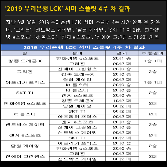 [e½ºÆ÷Ã÷ ¸¸Æò] LCK 4ÁÖ Â÷, ¡®»÷µå¹Ú½º-´ã¿ø¡¯ 6¿¬½ÂÀ¸·Î ¡®LCK..