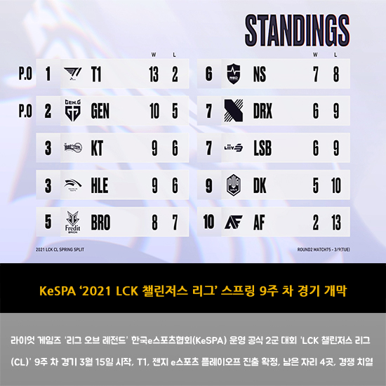 [e½ºÆ÷Ã÷ ¸¸Æò] LCK CL ½ºÇÁ¸µ 9ÁÖ Â÷, ¡®µÎ ÀÚ¸® ³²Àº PO¡¯
