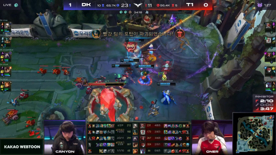2¼¼Æ®´Â Áø¿µ ¼±ÅñÇÀÌ ÀÖ´ø T1ÀÌ ·¹µå Áø¿µÀ» °í¸£¸ç ½ÃÀ۵ƴÙ. °æ±â ³»³» 17ºÐ ½ÃÁ¡¿¡¼ µµÇÕ 17ųÀÌ ±â·ÏµÇ´Â ³Å¸ÀüÀÌ À̾îÁö¸ç ÆØÆØÇÏ°Ô À̾îÁ³À¸³ª, 'Canyon' ±è°ÇºÎ ¼±¼ö°¡ ¸·°ÇÏ°Ô ¼ºÀåÇÑ ¿Ã¶óÇÁ¸¦ ÅëÇØ ±³ÀüÀ» ÁÖµµÇÏ¸ç ±ÕÇüÀ» ¹«³ÊÆ®·È´Ù. ÀÌÈÄ ´ã¿øÀÌ ÁÖ¿ä ¿ÀºêÁ§Æ®¸¦ µ¶Á¡ÇÏ¸ç °æ±â¸¦ ÁÖµµÇØ µÎ ¹øÂ° ¼¼Æ®¸¦ ¿¬´Þ¾Æ °¡Á®°¬´Ù.
