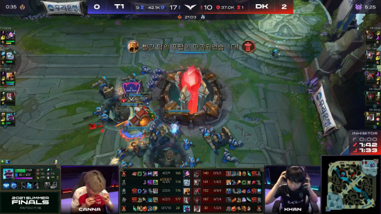 ¶óÀ̾ù °ÔÀÓÁî(ÀÌÇÏ ¶óÀ̾ù) ¡®¸®±× ¿Àºê ·¹Àüµå(League of Legends, ÀÌÇÏ LoL)¡¯ ±¹³» Á¤±Ô ¸®±× ¡®2021 LoL èÇǾ𽺠ÄÚ¸®¾Æ(ÀÌÇÏ LCK)¡¯ ¼¸Ó Æ÷½ºÆ®½ÃÁð¿¡¼ ´ã¿ø ±â¾Æ(ÀÌÇÏ ´ã¿ø)°¡ T1¸¦ 3:1·Î ²ª°í ¿ì½ÂÇß´Ù.