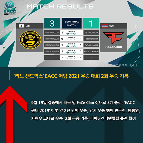 [e½ºÆ÷Ã÷ ¸¸Æò] EACC ¾îÅÒ 2021, ¸®ºê »÷µå¹Ú½º ¡®2ȸ ¿ì½Â¡¯ ..