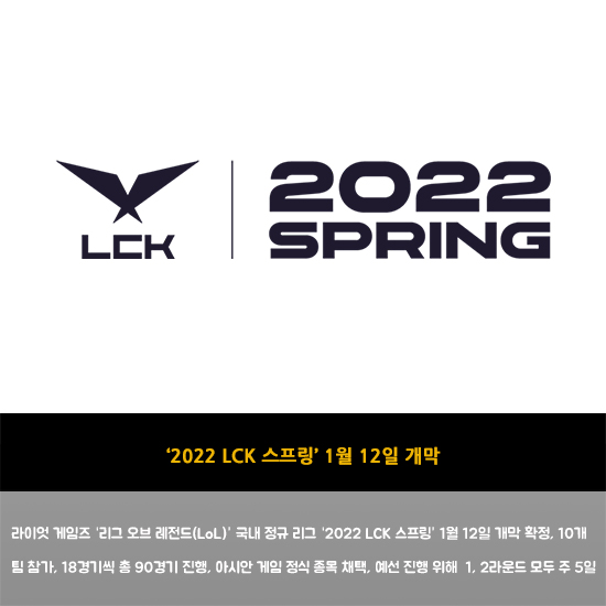 [e½ºÆ÷Ã÷ ¸¸Æò] 2022 LCK ½ºÇÁ¸µ, ¡®1¿ù 12ÀÏ °³¸·¡¯ È®Á¤