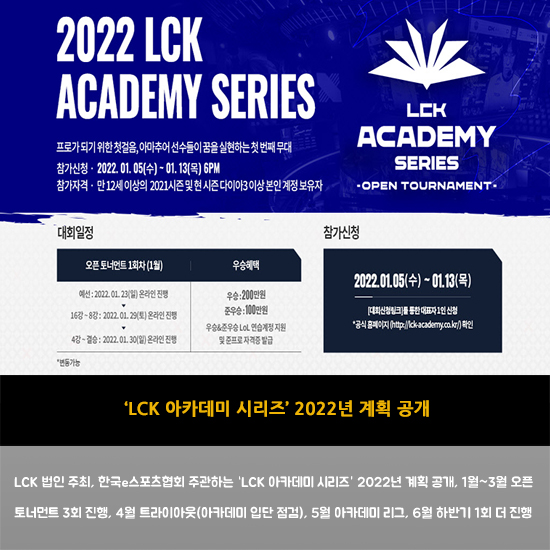 [e½ºÆ÷Ã÷ ¸¸Æò] ¡®LCK À¯¸ÁÁÖ Å½»ö¡¯ 2022 ¾ÆÄ«µ¥¹Ì ½Ã¸®Áî, 1¿ù..