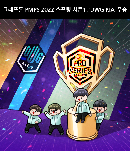 Å©·¡ÇÁÅæ ¡®PUBG: ¹èƲ±×¶ó¿îµå(ÀÌÇÏ ¹èƲ±×¶ó¿îµå)¡¯ ¸ð¹ÙÀÏ ¹öÀü Çѱ¹ ÃÖ»óÀ§ ´ëȸ ¡®¹èƲ±×¶ó¿îµå ¸ð¹ÙÀÏ ÇÁ·Î ½Ã¸®Áî(PUBG Mobile Pro Series, ÀÌÇÏ PMPS)¡¯ 2022 ½ºÇÁ¸µ ½ÃÁð1ÀÌ 4¿ù 15ÀϺÎÅÍ 30ÀϱîÁö °³ÃֵƴÙ. ÃÑ 16°³ ÆÀÀÌ ÃâÀüÇß°í DWG KIA°¡ ¿ì½ÂÄÅÀ» µé¾î ¿Ã·È´Ù.