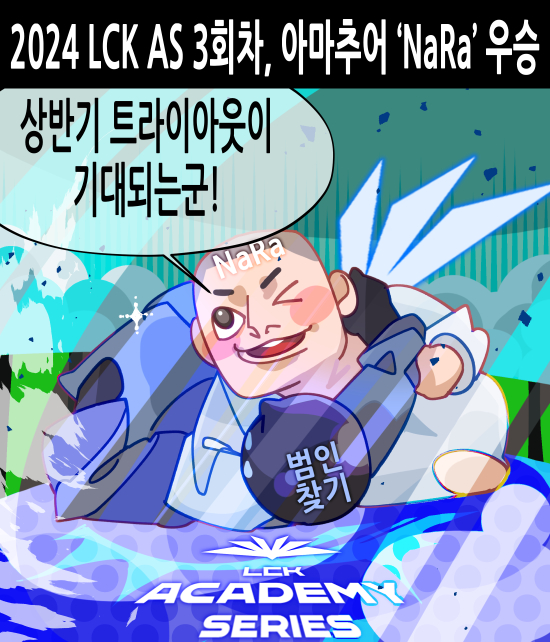 Çѱ¹e½ºÆ÷Ã÷Çùȸ(KeSPA)¿Í ¶óÀ̾ù °ÔÀÓÁî°¡ ¡®¸®±× ¿Àºê ·¹Àüµå(LoL)¡¯ À¯¸ÁÁÖ ¹ß±¼À» À§ÇØ ¿î¿µÇÏ´Â ¡®2024 LoL èÇǾ𽺠ÄÚ¸®¾Æ(LCK) ¾ÆÄ«µ¥¹Ì ½Ã¸®Áî(AS)¡¯ ¿ÀÇ Åä³Ê¸ÕÆ® 3ȸÂ÷ ´ëȸ¿¡¼ NaRa°¡ ¹üÀÎã±â¸¦ 2:1·Î À̱â°í ¿ì½ÂÇß´Ù. À̹ø ´ëȸµµ 2ȸÂ÷¿Í °°ÀÌ ¾Æ¸¶Ãß¾îÆÀ³¢¸® °á½Â¿¡¼ ¸¸³ª ´«±æÀ» ²ø¾ú´Ù.
