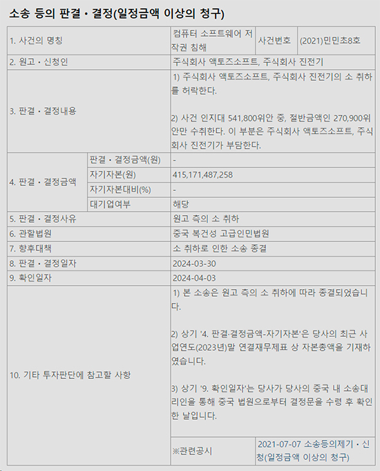 À§¸ÞÀ̵å¿Í ¾×ÅäÁî¼ÒÇÁÆ® °£ ¡®¹Ì¸£ÀÇÀü¼³ 2¡¯ IP(Áö½ÄÀç»ê±Ç) ºÐÀïÀÌ Á¾°á ´Ü°è¿¡ Á¢¾îµé¾ú´Ù. ¾×ÅäÁî¼ÒÇÁÆ®¿Í ÀÚȸ»ç ÁøÀü±â°¡ 2021³â À§¸ÞÀ̵带 »ó´ë·Î Á¦±âÇÑ ÄÄÇ»ÅÍ ¼ÒÇÁÆ®¿þ¾î ÀúÀÛ±Ç Ä§ÇØ ¼Ò¼ÛÀ» ÃëÇÏÇÏ¸é¼ ¼Ò¼ÛÀÌ Á¾°áµÆ´Ù. ½Ì°¡Æ÷¸£ ICC¿¡¼ ÁøÇà ÁßÀÎ ¹è»ó ÁßÀç°¡ ³¡³ª¸é ¡®¹Ì¸£ IP ºÐÀï¡®µµ ³¡³¯ Àü¸ÁÀÌ´Ù.