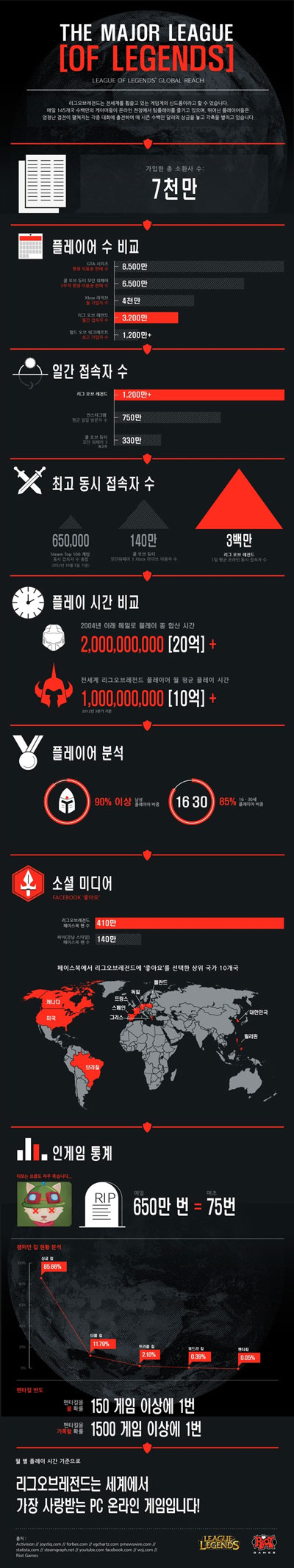 ¶ÇÇÑ ¶óÀ̾ù°ÔÀÓÁî´Â ´Ù¾çÇÑ Åë°è °á°ú¸¦ ¹ßÇ¥Çߴµ¥, ¸ÅÀÏ ¡®¸®±×¿Àºê·¹Àüµå¡¯¸¦ Ç÷¹ÀÌÇϱâ À§ÇØ °ÔÀÓ¿¡ Á¢¼ÓÇÏ´Â Ç÷¹À̾îµéÀÇ ±¹ÀûÀÇ ¼ýÀÚ´Â 145°³ ±¹¿¡ ´ÞÇÑ´Ù°í ¹àÇûÀ¸¸ç, ¸ÅÀÏ Ç÷¹ÀÌÇÏ´Â °ÔÀ̸ӵéÀº 1,200¸¸ ¸í ÀÌ»ó, ±×¸®°í ¡®¸®±×¿Àºê·¹Àüµå¡¯ÀÇ ¿ù°£ Ç÷¹ÀÌ¾î ¼ýÀÚ´Â 3,200¸¸ ¸í¿¡ ´ÞÇÏ´Â °ÍÀ¸·Î Áý°èµÇ¾ú´Ù.