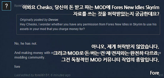 ½ÇÁ¦·Î À̹ø¿¡ ¹ß¸ÅµÈ À¯·á MOD Áß ÇϳªÀÎ ³¬½ÃÀÇ ¹¦¹Ì(Art of the Catch)¿¡´Â ´Ù¸¥ À¯Àú°¡ ¸¸µç ¾Ö´Ï¸ÞÀÌ¼Ç MOD Áß ÀϺΰ¡ »ç¿ëµÆ´Ù. ±×¸®°í ¾Ö´Ï¸ÞÀÌ¼Ç MOD¸¦ ¸¸µç ¡®Fore¡¯ À¯Àú´Â "Àڽſ¡°Ô ÀÌ¿ë Çã°¡¸¦ ¹ÞÁö ¾Ê¾Ò´Ù"°í ¹àÇû´Ù. ÀÌ ¹®Á¦·Î ³íÀïÀÌ ¹ú¾îÁöÀÚ ³¬½ÃÀÇ ¹¦¹Ì Á¦ÀÛÀÚ ¡®Chesko¡¯´Â ¹ëºê¿¡°Ô ÀÚ½ÅÀÇ MOD¸¦ âÀÛ¸¶´ç¿¡¼ ³»·Á ´Þ¶ó ¿äûÇß´Ù.