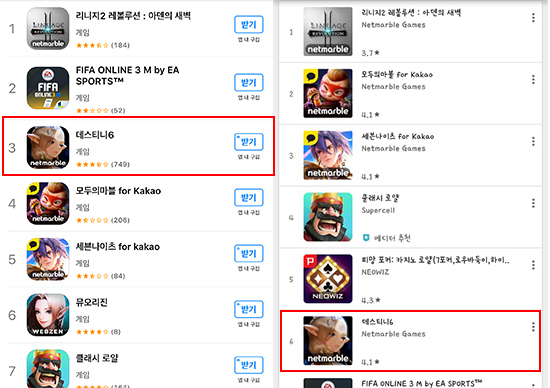 ³Ý¸¶ºí°ÔÀÓÁî(ÀÌÇÏ ³Ý¸¶ºí)¡®°¡ »óÀåÇÑ ÀÌÈÄ Ã³À½ ¼±º¸ÀÌ´Â ¸ð¹ÙÀÏ RPG ¡®µ¥½ºÆ¼´Ï6¡¯´Â Ãâ½Ã 6ÀÏÀÌ Áö³ 6¿ù 13ÀÏ ±âÁØ ¾ç´ë ¸¶ÄÏ ¸ÅÃâ 10À§±Ç¿¡ µé¸ç Àαâ¸ôÀÌ ÁßÀÌ´Ù.