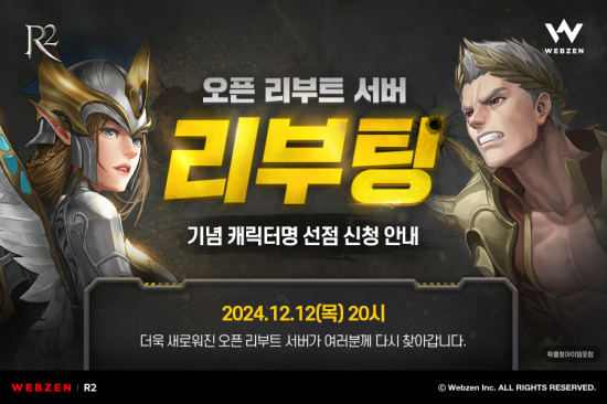 À¥Á¨ÀÌ PC MMORPG 'R2(Reign of Revolution)¡¯¿¡¼ ¿ÀÇ ¸®ºÎÆ® ¼¹ö ¸®ºÎÆÃÀ» ¾ÕµÎ°í ij¸¯ÅÍ¸í ¼±Á¡ À̺¥Æ®¸¦ ÁøÇàÇÑ´Ù.