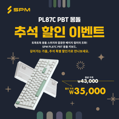 ¼¿ï ÁÖº¯±â±â Á¦ÀÛ¼Ò SPMÀÌ ´Ù°¡¿À´Â Ãß¼®À» ¸Â¾Æ ÀÚ»çÀÇ Àα⠸𵨠PL87C PBT ¸ùµ¹ Űº¸µå¸¦ ´ë»óÀ¸·Î Ưº° ÇÒÀÎ À̺¥Æ®¸¦ ÁøÇàÇÑ´Ù. À̹ø Çà»ç´Â ÇÕ¸®ÀûÀÎ °¡°ÝÀ¸·Î °íÄ÷¸®Æ¼ Űº¸µå¸¦ °æÇèÇÒ ¼ö ÀÖµµ·Ï ¸¶·ÃµÇ¾úÀ¸¸ç, °¡Á·¡¤ÁöÀÎ ¼±¹°¿ëÀº ¹°·Ð º»ÀÎÀ» À§ÇÑ ½Ç¼Ó ÀÖ´Â ¼±ÅÃÀÌ µÉ Àü¸ÁÀÌ´Ù.