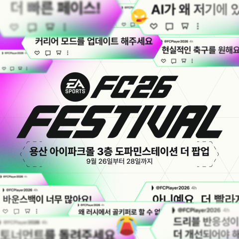 EA SPORTS FCTM 26(ÀÌÇÏ FC 26)ÀÇ Á¤½Ä Ãâ½Ã¸¦ ±â³äÇØ, Ç÷¹À̽ºÅ×ÀÌ¼Ç °ø½Ä ÆÇ¸ÅÁ¡ PlayShopÀÌ Electronic Arts Korea, K¸®±×¿Í ÇÔ²² ¼¿ï ¿ë»ê ¾ÆÀÌÆÄÅ©¸ô 3Ãþ µµÆÄ¹Î½ºÅ×ÀÌ¼Ç ÆË¾÷Á¸¿¡¼ ¡®Ç²º¼ Æä½ºÆ¼¹ú¡¯ ÆË¾÷½ºÅä¾î¸¦ ¿î¿µÇÑ´Ù°í 22ÀÏ ¹àÇû´Ù.