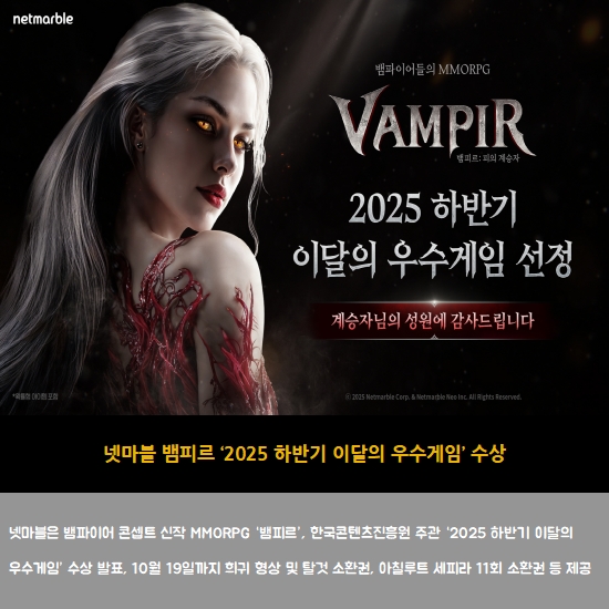 [³Ý¸¶ºí] ¹ìÇǸ£, ¡®2025 ÇϹݱâ ÀÌ´ÞÀÇ ¿ì¼ö°ÔÀÓ¡¯ ¼ö»ó