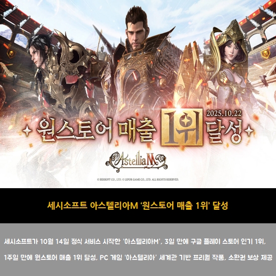 [¼¼½Ã¼ÒÇÁÆ®] ¾Æ½ºÅÚ¸®¾ÆM, ¿ø½ºÅä¾î ¸ÅÃâ ¼øÀ§ 1À§ ´Þ¼º