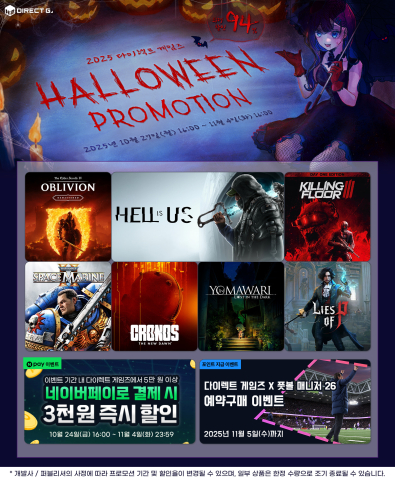 ´ÙÀÌ·ºÆ® °ÔÀÓÁî¿¡¼ ÁøÇàµÇ´Â À̹ø ÇÁ·Î¸ð¼ÇÀº 10¿ù 27ÀÏ(¿ù) ¿ÀÈÄ 4½ÃºÎÅÍ 11¿ù 4ÀÏ(È) ¿ÀÈÄ 4½Ã±îÁö 8Àϰ£ ÁøÇàµÇ¸ç, Ãâ½Ã ÈÄ Ã¹ ÇÒÀÎÀ» ÁøÇàÇÏ´Â ¡®Çï ÀÌÁî ¾î½º¡¯¸¦ ºñ·ÔÇÏ¿© ¡®¿¤´õ ½ºÅ©·Ñ 4: ¿Àºí¸®ºñ¾ð ¸®¸¶½ºÅÍ¡¯, ¡®Å³¸µ Ç÷ξî 3 µ¥ÀÌ¿ø ¿¡µð¼Ç¡¯, ¡®¿öÇØ¸Ó 40,000: ½ºÆäÀ̽º ¸¶¸° 2¡¯, ¡®Å©·Î³ë½º: ´õ ´º ´ø¡¯, ¡®¿ä¸¶¿Í¸® 3: ¶°µµ´Â ¹ã¡¯, ¡®PÀÇ °ÅÁþ¡¯ µî ½ÅÀÛ ¹× Àα⠰ÔÀÓÀ» ÃÖ´ë 94% ÇÒÀÎµÈ °¡°Ý¿¡ ±¸¸ÅÇÒ ¼ö ÀÖ´Ù.