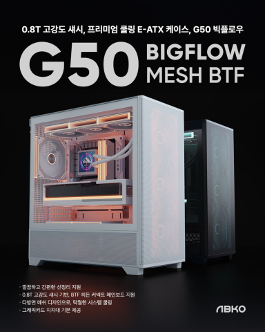 ÁÖ½Äȸ»ç ¾ÛÄÚ¿¡¼ Â÷¼¼´ë Á¶¸³ Æ®·»µå¿¡ ¸ÂÃá ÇÁ¸®¹Ì¾ö E-ATX PC ÄÉÀ̽º ¡®G50 ºòÇ÷οì MESH ARGB BTF¡¯¸¦ °ø½Ä Ãâ½ÃÇß´Ù. G50 ºòÇ÷οì´Â ¹«·Á 0.8TÀÇ Æ°Æ°ÇÑ ¼¨½Ã¸¦ ±â¹ÝÀ¸·Î BTF È÷µç Ä¿³ØÆ® ¸ÞÀκ¸µå ±Ô°ÝÀ» ¿Ïº®ÇÏ°Ô Áö¿øÇÏ¿©, ÄÉÀÌºí ³ëÃâ ¾ø´Â ¡®Å¬¸° ºôµå(Clean Build)¡¯ ȯ°æÀ» ±¸ÇöÇÒ ¼ö ÀÖ´Â °ÍÀÌ °¡Àå Å« Ư¡ÀÌ´Ù. E-ATX, ATX, M-ATX, M-ITX µî ´Ù¾çÇÑ ÆûÆÑÅ͸¦ Áö¿øÇØ À¯¿¬ÇÑ ½Ã½ºÅÛ ±¸¼ºÀÌ °¡´ÉÇϸç, Àü¸é°ú Ãø¸é ¸ðµÎ ½ÉÇÃÇÑ µðÀÚÀÎÀ¸·Î ÇÏÀÌ¿£µå Á¶¸³ ȯ°æ¿¡ ÃÖÀûȵǾî ÀÖ´Ù.
