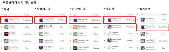 Ragnarok: TwilightÀº µ¿³²¾Æ½Ã¾Æ Áö¿ª Á¤½Ä ·ÐĪ ÈÄ ±¸±Û Ç÷¹ÀÌ Àα⠼øÀ§ ű¹ 1À§, ¸»·¹ÀÌ½Ã¾Æ 1À§, Àεµ³×½Ã¾Æ 1À§, Çʸ®ÇÉ 1À§, ½Ì°¡Æ÷¸£ 2À§¸¦ ±â·ÏÇÏ´Â µî »óÀ§±ÇÀ» À¯ÁöÇϰí ÀÖ´Ù. ű¹, Çʸ®ÇÉ Áö¿ª¿¡¼´Â ±¸±Û Ç÷¹ÀÌ ¸ÅÃâ ¼øÀ§°¡ Á¡Â÷ »ó½ÂÇØ 10À§±Ç¿¡ ÁøÀÔÇß´Ù.