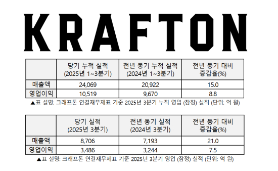 Å©·¡ÇÁÅæÀº Çѱ¹Ã¤Åñ¹Á¦È¸°è±âÁØ(K-IFRS)À» Àû¿ëÇÑ ¿¬°á À繫Á¦Ç¥¸¦ ±âÁØÀ¸·Î 2025³â 3ºÐ±â ¡ã¸ÅÃâ 8,706¾ï ¿ø ¡ã¿µ¾÷ÀÌÀÍ 3,486¾ï ¿øÀ» ´Þ¼ºÇß´Ù. Áö³ÇØ °°Àº ±â°£°ú ºñ±³ÇØ ¸ÅÃâ°ú ¿µ¾÷ÀÌÀÍÀº °¢°¢ 1,513¾ï ¿ø(+21%), 242¾ï ¿ø(+7.5%) Áõ°¡Çß´Ù. ÀÌ·Î½á ¿ÃÇØ 3ºÐ±â ´©Àû ½ÇÀûÀº ¸ÅÃâ¾× 2Á¶ 4,069¾ï ¿ø, ¿µ¾÷ÀÌÀÍ 1Á¶ 519¾ï ¿øÀ» ±â·ÏÇÏ¸ç »ç»ó ÃÖ°íÄ¡¸¦ °æ½ÅÇß´Ù. 3ºÐ±â ¸¸¿¡ ´©Àû ¿µ¾÷ÀÌÀÍÀÌ 1Á¶ ¿øÀ» ³Ñ¾î¼± °Ç â»ç ÀÌ·¡ ÃÖÃÊ´Ù.