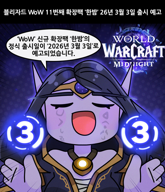 ºí¸®ÀÚµå ¿£ÅÍÅ×ÀÎ¸ÕÆ®(ÀÌÇÏ ºí¸®ÀÚµå)°¡ ÀÚ»ç PC MMORPG ¡®¿ùµå ¿Àºê ¿öÅ©·¡ÇÁÆ®(WoW)¡¯ ½Å±Ô È®ÀåÆÑ ¡®Çѹã(Midnight)¡¯ Á¤½Ä Ãâ½ÃÀÏÀ» 2026³â 3¿ù 3ÀÏ·Î ¿¹°íÇß´Ù. ÀÌ¿¡ ¾Õ¼ »çÀü ÆÇ¸Å¸¦ ÁøÇà ÁßÀε¥, ±¸¸ÅÀÚ´Â 12¿ù 4ÀϺÎÅÍ ÇÙ½É ÄÜÅÙÃ÷ Áß ÇϳªÀÎ ¡®ÇϿ졡¯À» üÇèÇÒ ¼ö ÀÖ´Ù.