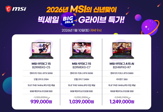 MSI´Â À̹ø ¶óÀÌºê ¹æ¼ÛÀ» ÅëÇØ ¿£Æ®¸®±ÞºÎÅÍ °í¼º´É±îÁö ¾Æ¿ì¸£´Â °ÔÀÌ¹Ö ³ëÆ®ºÏ ¶óÀξ÷À» ¼±º¸ÀδÙ. RTX 5050 ±×·¡ÇÈÀ» žÀçÇϰí ÀÎÅÚ ÄÚ¾î 7 ¹× 5 Áß ¼±Åà °¡´ÉÇÑ '»çÀ̺¸±× 15'¸¦ ½ÃÀÛÀ¸·Î, AMD ¶óÀÌÁ¨ 7 ÇÁ·Î¼¼¼¿Í RTX 5060À» Àû¿ëÇÑ ¾÷±×·¹ÀÌµå ¸ðµ¨ '»çÀ̺¸±× A15', ÀÎÅÚ ÄÚ¾î i9-14900HX/i7-14650HX¿Í RTX 5060~5070 ±¸¼ºÀÇ '¼Òµå GF76 HX'±îÁö ¼º´É ´Ü°èº° Á¦Ç°À» ¼øÂ÷ÀûÀ¸·Î ¼Ò°³ÇÑ´Ù.