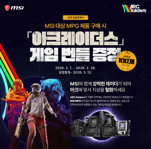 ¼¼ ¹øÂ°´Â ÃֽаÔÀÓ ¹øµé ÁõÁ¤ÀÌ´Ù. Çà»ç ´ë»óÀÎ MPG ½Ã¸®Áî ¸ÞÀκ¸µå ¹× °í¼º´É ÄÄÆ÷³ÍÆ®¸¦ ±¸¸ÅÇÏ´Â °í°´¿¡°Ô´Â ±â´ëÀÛÀÎ ¡®¾ÆÅ© ·¹ÀÌ´õ½º(ARC Raiders)¡¯ °ÔÀÓ ¹øµéÀ» ¼±Âø¼øÀ¸·Î ÁõÁ¤ÇÑ´Ù. °í»ç¾ç ½Ã½ºÅÛ ±¸Ãà°ú µ¿½Ã¿¡ ÃֽаÔÀÓ±îÁö Áñ±æ ¼ö ÀÖ´Â ÀýÈ£ÀÇ ±âȸ´Ù.