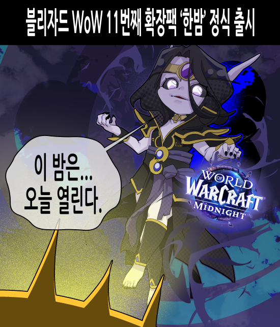 ºí¸®ÀÚµå ¿£ÅÍÅ×ÀÎ¸ÕÆ®(ÀÌÇÏ ºí¸®ÀÚµå)°¡ ÀÚ»ç PC MMORPG ¡®¿ùµå ¿Àºê ¿öÅ©·¡ÇÁÆ®(WoW)¡¯ ½Å±Ô È®ÀåÆÑ ¡®Çѹã(Midnight)¡¯À» 3¿ù 3ÀÏ Á¤½Ä Ãâ½ÃÇß´Ù. 2024³â ³ª¿Â ¡®³»ºÎ ÀüÀï(The War Within)¡¯À¸·ÎºÎÅÍ ¾à 2³â ¸¸ÀÌ´Ù. ½ÅÈ ²Ù·¯¹Ì ±¸¸ÅÀÚ´Â 2¿ù 7ÀϺÎÅÍ »çÀü ÀÌ¿ë ÁßÀ̾ú´Ù.