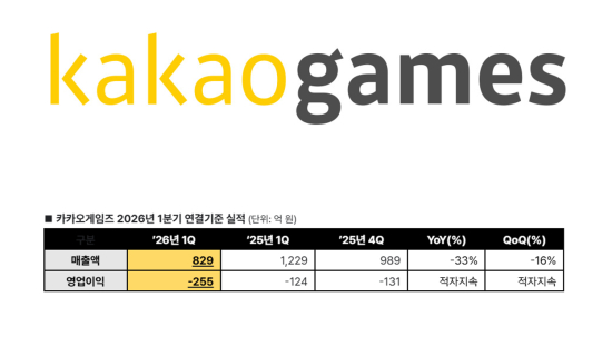 [īī¿À°ÔÀÓÁî] 2026³â 1ºÐ±â ¸ÅÃâ¾× ¾à 829¾ï ¿ø, ¿µ¾÷¼Õ½Ç ¾à 255¾ï ¿ø ±â·Ï |