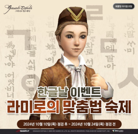 ÇѺû¼ÒÇÁÆ®¿¡¼ ÆÛºí¸®½ÌÇϰí IMC°ÔÀÓÁî¿¡¼ °³¹ßÇÑ PC ¿Â¶óÀÎ MMORPG(´ë±Ô¸ð´ÙÁßÁ¢¼Ó¿ªÇÒ¼öÇà°ÔÀÓ) '±×¶ó³ªµµ ¿¡½ºÆÄ´Ù'°¡ ÇѱÛÀÇ ¼ÒÁßÇÔÀ» µÇ»õ±â´Â '¶ó¹Ì·ÎÀÇ ¸ÂÃã¹ý' À̺¥Æ®¸¦ Àü°³ÇÑ´Ù°í ¹àÇû´Ù.