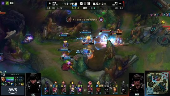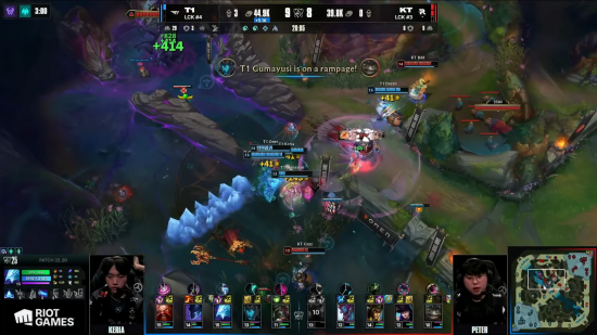 3¼¼Æ®¿¡¼µµ KT°¡ ¿¬ÀÌ¾î ½Â¸®¸¦ °¡Á®°¬´Ù. ¹®¿ìÂù ¼±¼ö°¡ ±â¿ëÇÑ ¹®µµ ¹Ú»ç°¡ ÃʹݺÎÅÍ ºü¸£°Ô ¼ºÀåÇØ ÇÑŸ ±³Àü¸¶´Ù ¿ìÀ§¸¦ Á¡ÇÒ ¼ö ÀÖ°Ô ÇØÁáÀ¸¸ç, À̽¹Π¼±¼ö°¡ ±â¿ëÇÑ Å©»êÅ×°¡ ÆÀÀ» µÞ¹ÞħÇÏ¸ç ¼¼Æ® ½Â¸®¸¦ È®º¸Çß´Ù. ¹Ý¸é T1Àº °æ±â Ç÷¹ÀÌ Ãø¸é¿¡¼ »ý°Ü³ ÀÚÀßÇÑ ½Ç¼ö°¡ ´©ÀûµÇ¸ç °æ±â È帧À» µÚÁý´Â µ¥ ½ÇÆÐÇß´Ù.