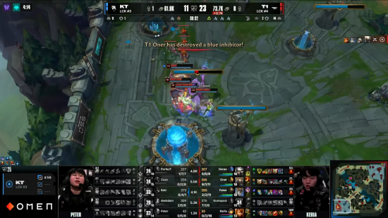 1¼¼Æ®´Â T1ÀÌ ½Â¸®Çß´Ù. KT´Â ÃʹݺÎÅÍ ¹ÙÅÒ ¶óÀο¡¼ ¿ìÀ§¸¦ Á¡Çϰí ù µå·¡°ï±îÁö È®º¸Çϸç ÃʹÝÀ» À¯¸®ÇÏ°Ô Ç®¾î°¬À¸³ª, T1ÀÌ Á¶ÇÕ»ó ÀÌÁ¡À» Àû±ØÀûÀ¸·Î Ȱ¿ëÇϸç Á߹ݺο¡ ¿ªÀü¿¡ ¼º°øÇß´Ù. ƯÈ÷ ÀÌ»óÇõ ¼±¼ö°¡ ±â¿ëÇÑ Å»¸®¾ß°¡ ÀûÀçÀû¼Ò¿¡¼ Ȱ¾àÇÏ¸ç ¿ªÀü±ØÀ» À̲ø¾ú´Ù.