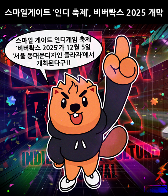 ½º¸¶ÀϰÔÀÌÆ® ǻó·¦Àº ¡®ºñ¹öŽô½º 2025¡¯¸¦ 12¿ù 5ÀϺÎÅÍ 7ÀϱîÁö ¼¿ï µ¿´ë¹®µðÀÚÀÎÇöóÀÚ(DDP)¿¡¼ °³ÃÖÇÑ´Ù. ¼öµµ±Ç ÃÖ´ë ±Ô¸ð Àεð°ÔÀÓ&ÄÃó Æä½ºÆ¼¹ú·Î, ±¹³» Àεð°ÔÀÓ »ýŰè¿Í Àúº¯À» È®´ëÇϰí âÀÛÀÚ¸¦ Áö¿øÇϱâ À§ÇØ ¸¶·ÃµÈ ÀÚ¸®´Ù.