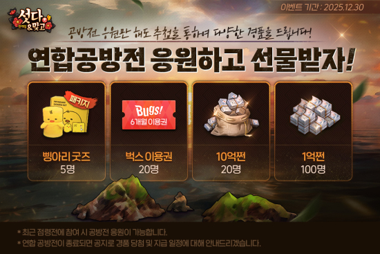 À̹ø À̺¥Æ®´Â Å©¸®½º¸¶½º ÇÑÁ¤ ÄÜÅÙÃ÷¸¦ ½ÃÀÛÀ¸·Î, 2025³âÀÇ ¸¶Áö¸·À» Àå½ÄÇÒ ¡®¿ÕÁß¿ÕÀü¡¯, ±×¸®°í 1¿ù ¸»±îÁö À̾îÁö´Â ¡®¿¬ÇÕ °ø¹æÀü À̺¥Æ®¡¯ µî dz¼ºÇÑ Áñ±æ °Å¸®·Î ±¸¼ºµÇ¾î ÀÌ¿ëÀÚµéÀÌ °Ü¿ï ½ÃÁð ³»³» ²÷ÀÓ¾ø´Â º¸»óÀ» °æÇèÇÒ ¼ö ÀÖµµ·Ï ±âȹµÆ´Ù.