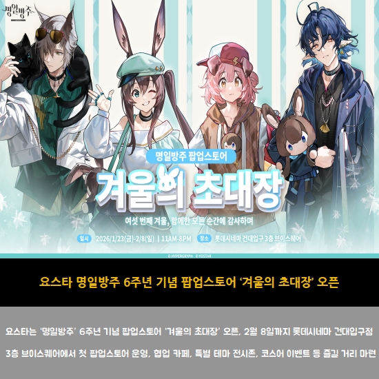 [¿ä½ºÅ¸] ¸íÀϹæÁÖ, 6Áֳ⠱â³ä ÆË¾÷½ºÅä¾î ¡®°Ü¿ïÀÇ ÃÊ´ëÀ塯 ¿ÀÇ  (0)  2026-01-23