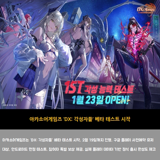 [¾ÆÄ«¼Ò¾î°ÔÀÓÁî] DX: °¢¼ºÀÚµé, º£Å¸ Å×½ºÆ® ½ÃÀÛ  (0)  2026-01-23