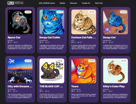 CONX ¾Æ·¹³ªÀÇ µÎ ¹øÂ° ÇÁ·ÎÁ§Æ® ¡®ÁÖÀç¹ü ¾Æ·¹³ª¡¯´Â CONX°¡ ´Ù¾çÇÑ ¹®È »ê¾÷À¸·Î È®ÀåÇÏ´Â »ó¡ÀûÀÎ ÇÁ·ÎÁ§Æ®´Ù. AI¸¦ Ȱ¿ëÇÑ 2Â÷ âÀÛÀ» Àå·ÁÇØ Ä¿¹Â´ÏƼ Âü¿©¸¦ Ȱ¼ºÈÇϰí CONXÀÇ µ¶Ã¢ÀûÀÎ º¸»ó ±¸Á¶¸¦ Àû¿ëÇÏ´Â µ¥ ÃÊÁ¡À» ¸ÂÃè´Ù. À̹ø ÇÁ·ÎÁ§Æ®ÀÇ Âü°¡ÀÚµéÀº ÁöÁ¤µÈ »çÁøÀ» Ȱ¿ëÇØ ÀÚ½ÅÀÇ °³¼ºÀ» ´ãÀº Çȼ¿ ¾ÆÆ® ¾ÆÀ̵ð¾î¸¦ Á¦ÃâÇßÀ¸¸ç, °ø¸ð ±â°£ µ¿¾È ÃÑ 344°ÇÀÇ ¾ÆÀ̵ð¾î°¡ Á¢¼öµÇ¸ç ³ôÀº °ü½ÉÀ» ±â·ÏÇß´Ù.