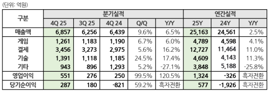 [NHN] 2025³â ¿¬°£ ¸ÅÃâ 2Á¶5,163¾ï¿ø, ¿µ¾÷ÀÌÀÍ 1,324¾ï¿ø |