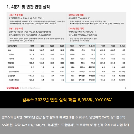 [ÄÄÅõ½ºÈ¦µù½º] 2025³â 4ºÐ±â ¸ÅÃâ 258¾ï ¿ø, ¿µ¾÷ÀÌÀÍ 6¾ï ¿ø  (0)  2026-02-12