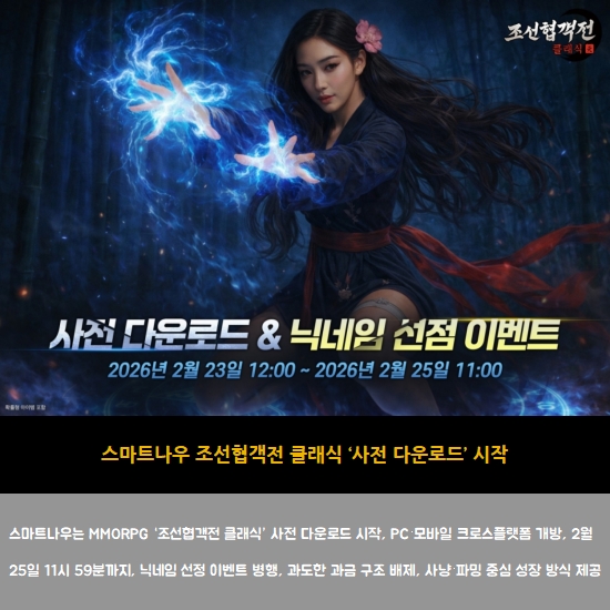 [½º¸¶Æ®³ª¿ì] Á¶¼±Çù°´Àü Ŭ·¡½Ä, 2¿ù 23ÀϺÎÅÍ »çÀü ´Ù¿î·Îµå ¹× ´Ð³×..  (0)  2026-02-23