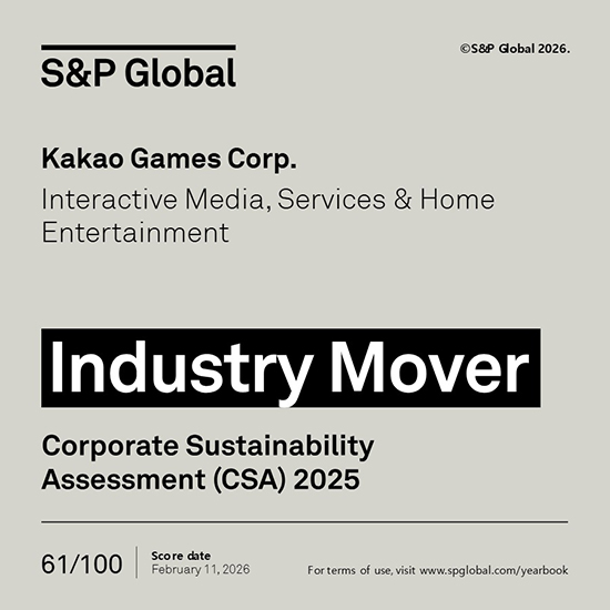 īī¿À°ÔÀÓÁî´Â ±Û·Î¹ú ½Å¿ëÆò°¡»ç S&P ±Û·Î¹úÀÌ ¹ßÇ¥ÇÑ 2025³â ±â¾÷ Áö¼Ó°¡´É¼º Æò°¡ CSA(Corporate Sustainability Assessment)¿¡¼­ ¡®Àδõ½ºÆ®¸® ¹«¹ö¡¯·Î ¼±Á¤µÆ´Ù°í 26ÀÏ ¹àÇû´Ù.