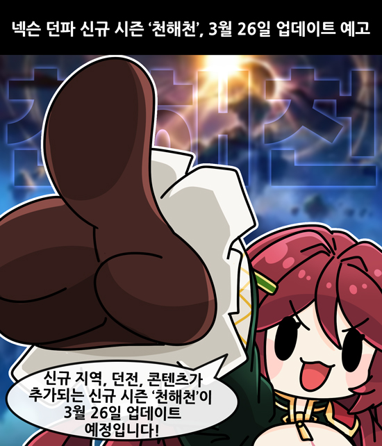 ³Ø½¼Àº 3¿ù 7ÀÏ ¡®´øÀü¾ØÆÄÀÌÅÍ(ÀÌÇÏ ´øÆÄ)¡¯ ¿Â¶óÀÎ ¼îÄÉÀ̽º ¡®´øÆÄ·ÎON: ÃµÇØÃµ¡¯À» ÅëÇØ 3¿ù 26ÀÏ ¾÷µ¥ÀÌÆ® ¿¹Á¤ÀÎ ½Å±Ô ½ÃÁð ¡®ÃµÇØÃµ¡¯À» ¹ßÇ¥Çß´Ù. ¹ßÇ¥¿¡ µû¸£¸é ½Å±Ô Áö¿ª, ´øÀü, ÄÜÅÙÃ÷°¡ Ãß°¡µÇ°í ÆÄ¹Ö ½Ã½ºÅÛ °³Æí°ú °¢Á¾ ÆíÀǼº °³¼±ÀÌ ÀÌ·ïÁø´Ù.