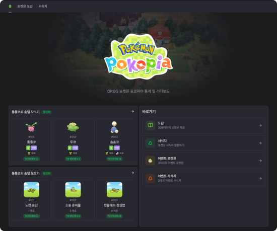 OP.GG´Â Æ÷Äϸó ½ÅÀÛ 'Æ÷ÄÚÇǾÆ(Pokémon Pokopia)'¸¦ À§ÇÑ Àü¿ë °ø·« ÆäÀÌÁö¸¦ ÀÚ»ç Ç÷§Æû¿¡ Ãâ½ÃÇß´Ù. À̹ø ÆäÀÌÁö´Â Æ÷ÄÚÇÇ¾Æ À¯ÀúµéÀÌ °ÔÀÓ ³» Æ÷Äϸó°ú ¼½ÄÁö Á¤º¸¸¦ ÇÑ °÷¿¡¼ Æí¸®ÇÏ°Ô È®ÀÎÇÒ ¼ö ÀÖµµ·Ï Áö¿øÇϸç, ÇâÈÄ ´Ù¾çÇÑ ÄÜÅÙÃ÷¸¦ Áö¼ÓÀûÀ¸·Î Ãß°¡ÇØ ³ª°¥ ¿¹Á¤ÀÌ´Ù.